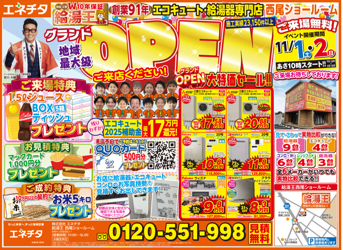 🎉給湯王 西尾ショールーム グランドオープン大特価セール開催🎉