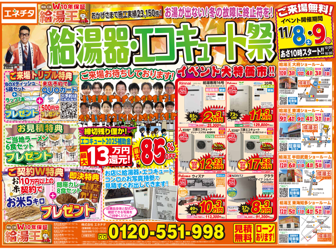 ぜひこの機会に、給湯王ショールームへお越しください!