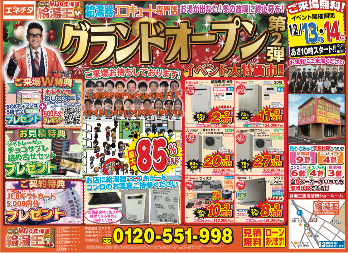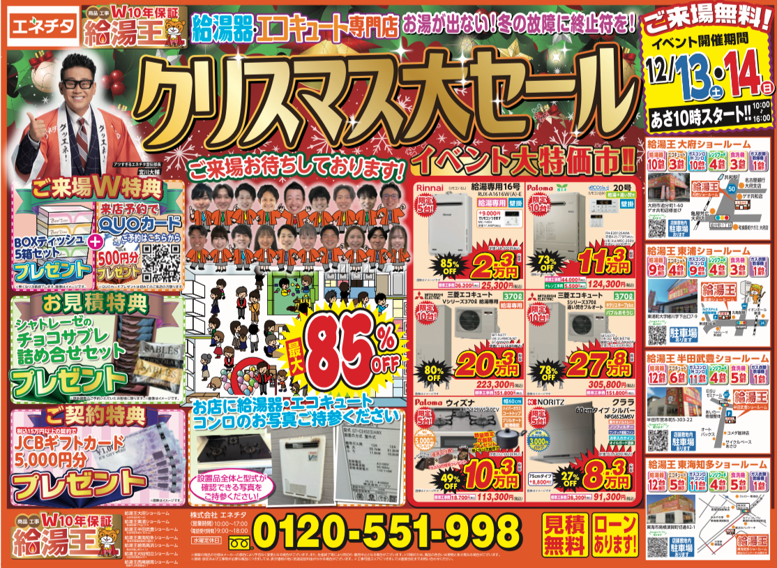 🎉給湯王 クリスマス大セール&西尾碧南ショールームグランドオープン第2弾🎉